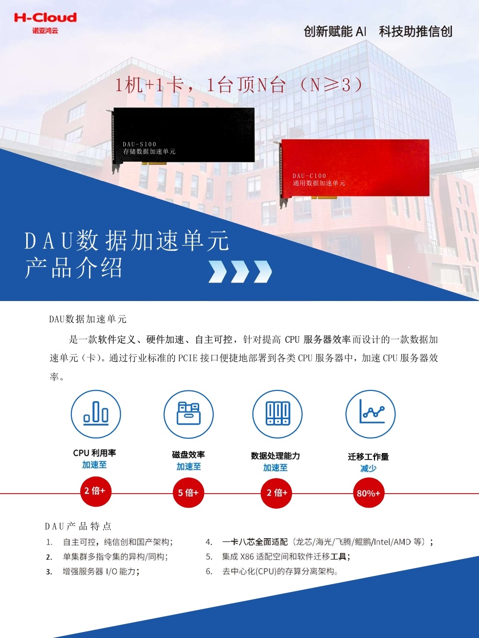 首创+全信创 一卡即“云”,一云多“芯”。DAU-S160存储数据加速单元,开箱即用的超融合/双活/分布式存储/云桌面/AI大模型一体机解决方案!